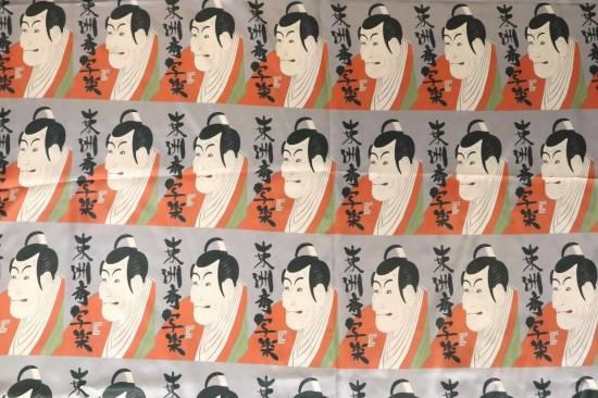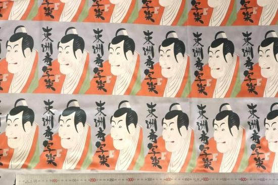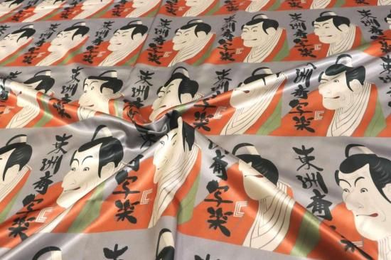 東洲斎写楽プリント裏地(color.2シルバー系)浮世絵裏地,市川鰕蔵の竹村定之進
